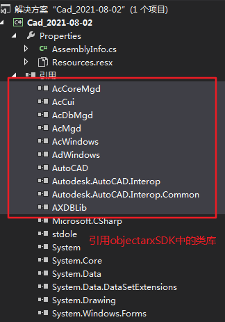 本质上,这也是一个类库项目,与2.1节类似,也是先编译生成一个.dll格式的动态链接库,然后再通过NETLOAD命令加载入Cad中,随后键入xxx命令,执行操作。但是,与上述开发形式相比,其与用户之间的交互模式更为友好。